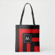 Elegant modern monogram on black and red striped Tote Bag. Simple yet elegant design! Monogram only on the front side.