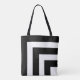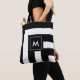 Monogram on modern abstract black, and white striped Tote Bag. Simple yet elegant design matches most colours.
