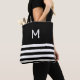 Beautiful modern black and white stripes with monogram Tote Bag. Elegant women black white shopping Bag.