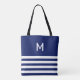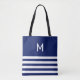 Beautiful modern blue and white stripes with monogram Tote Bag. Elegant women blue white shopping Bag.