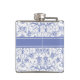 Monogram on Stylish Blue Periwinkle Pattern Hip Flask