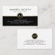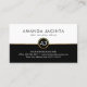 A white and black layered cover is demarcated by a thin faux gold line near the card's center. Resting on this line is your name initials-monogram inside a gold circle. At the top of the card is your prestigious name and job title with the contact details southwards near the the base.