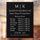 Modern Minimalist Business Hours Window Cling. Black & White or choose your custom colours. Perfect for retail companies, small business shops, salons, spas, bakeries, cafes, restaurants, bars and more. Easy to personalise with your monogram initials, business name and information, photos, slogan or even add your logo or personal brand design.
