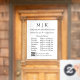 Modern Minimalist Business Hours Window Cling. Black & White or choose your custom colours. Add your website or social media web address to the QR Scan Code. Perfect for retail companies, small business shops, salons, spas, bakeries, cafes, restaurants, bars and more. Easy to personalise with your monogram initials, business name and information, photos, slogan or even add your logo or personal brand design.