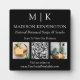 Modern Minimalist Business Plaque Tabletop Sign with 2 Photos. Black & White or choose your custom colours. Add your website or social media web address to the QR Scan Code. Allow customers to use the scan to access information on your items such as products or menu items. Perfect for retail companies, small business shops, mall kiosks, trade show and event booths, hospitality, salons, spas, bakeries, cafes, restaurants, bars and more. Easy to personalise with your monogram initials, business name and information, photos, slogan or even add your logo or personal brand design.