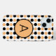 Design features Orange circle in the middle of the case with monogram ( create as template) with black border. The Big Circle is surrounded by black and orange dots of the same size to make more attractive look.