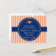 Monogram Orange and White Stripes with Royal Blue Announcement Postcard