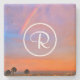 Monogram Orange Blue Sunset Rainbow Photo Stylish Stone Coaster