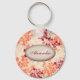 Monogram Orange Red & Cream Flowers Retro Key Ring
