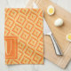 Monogram Orange Three-Tone Diamond Pattern Tea Towel