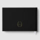 Monogram oval leaves crest hand drawn gold foil on black wedding guest book. Elegant foil gold and black book for your guests to manually write their good wishes and hopes to create a gift for the happy couple to cherish forever. Other matching items are available. Features original monogram hand drawn oval leaves art and design by Sarah Trett for www.mylittleedenweddings.com and www.mylittleeden.com on Zazzle.