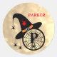 Monogram P Halloween Sky Witch Spiders Name Classic Round Sticker