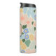 Pretty monogrammed flower pattern thermal tumbler. Features a framed monogram with a pretty floral and leaf motif in shades of pastel pink, light blue and green.