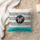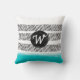 monogram pattern black white and turquoise boho cushion