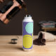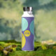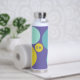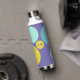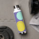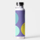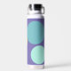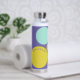 Personalised water bottle with initials and the owner's name, designed with circles in a fresh colour palette including aqua, yellow-green and purple. Easy to customise with its templates! Matching articles in my shop.