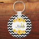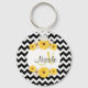 This chevron pattern is created with black and white zig zags. There is a monogram in the middle of this product with yellow and black. There are daisies at the top of the white circle. This product is extremely elegant, and everyone will know who it belongs to!