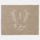 Custom white monogram and name with family established year elegant chic country farmhouse style beige burlap blanket. +++++++ A modern keepsake gift for weddings, anniversaries, housewarmings, Christmas, or any other occasion.