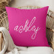 Make your home or office look stylish with this modern monogram pillow. Crafted in a white script on hot pink, the pillow features your name in the centre to give it a personalised look. It's perfect for adding a chic touch to your bedroom, dorm room, or office. With its beautiful design and unique look, it's sure to be the perfect addition to your décor.