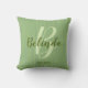 Personalised Monogram Name throw pillow featuring name and monogram/initial with established year on a green striped background. Perfect as gift for newlyweds, holiday gift for family, family reunion favours, housewarming gift and gift for any special occasions.
