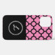Elegant customisable monogram [quatrefoil pink and black design with diamante detail which you can personalise to your own initial choice. this cell phone cover will make a strong statement of style. Personalise the monogram to your preferred initial.