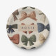 Monogram Personalised Retro Vintage Bow Pattern Paper Plate