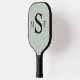 Personalised with your monogram in sage green background Pickleball paddle. Perfect for a guys or gals. 100% customer satisfaction every day with Zazzle.