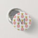 Button adorns a glitter pink and gold pineapple pattern with your initial.