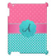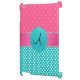Chic, modern and trendy Pink polka dots pattern and turquoise white polka dots, with faux turquoise glitter scallop circle and pink diamond stripe (faux not real diamonds) and monogram letter change to any letter a,b,c,d,e,f,g,h,i,j,k,l,m,n,o,p,q,r,s,t,u,v,w,x,y,z. Girly gift ideas for women.