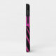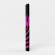 Monogrammed modern black and fuchsia pink FAUX glitter zebra print stripe pattern iPhone 11 Barely There Case-Mate brand case with PRINTED ribbon and PRINTED jewel brooch. Customise it to add your name, initial, or other text. If you need assistance, email niteowlstudio@gmail.com.