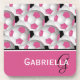 An eye-catching and stylish football soccer ball design featuring a pattern of black and white and pink and white soccer balls with accents in coordinating pink, black and white with your monogram initials and name. Ideal for the soccer girl or soccer Mum.