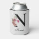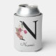 Monogram Pink Boho Girly Floral Initial N Can Cooler