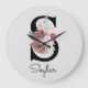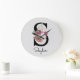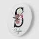 Monogram Pink Boho Girly Floral Initial S Large Clock