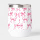 Pink Bow Coquette Aesthetic Monogrammed thermal wine tumbler for her. Preppy and trendy. Personalise it with her initial. Makes a great bridesmaid gift.