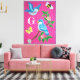 Monogram Pink Cheerful Bluebird Collage Vintage Canvas Print