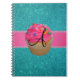 Monogram pink cupcake turquoise glitter spiral notebook