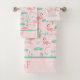 Monogram Pink Flamingos Green Palm Leaves Tropical Bath Towel Set