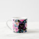 Monogrammed Pink Floral Espresso Coffee Cup. Lovely Floral Monogram Pink watercolor flowers, accented by green foliage on a black background. Fully customisable and transferable. Artist Yulia Podlinnova.