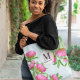 Monogram Pink Flowers Custom Peonies Tote Bag