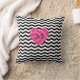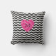 Trendy monogram pink heart volleyball on a black and white chevron pattern background throw pillow. Perfect for your home, car or travel. Accent your home with a monogram pink volleyball pillow. Customise this monogram with your own initials or name. Great for a gift.