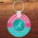 Monogram pink polka dots turquoise chevron sparkle key ring