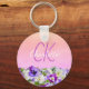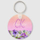 An elegant border of violet, lavender coloured, purple and white watercolored pansies on a pink and peach coloured backdrop. Personalise and add your monogram letters, initials and name, white and purple coloured letters, hand lettered style script.