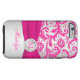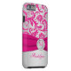 Monogrammed modern hot pink and silvery grey floral damask pattern Vibe™ iPhone 6 case with PRINTED ribbon and PRINTED faux engraved look crystal brooch. it to add your name, initial, or other text. If you need assistance, email niteowlstudio@gmail.com.