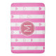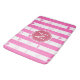 Monogram Pink Stripes Modern Heart Pattern Bath Mat