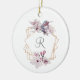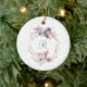 Personalise this elegant pink white and grey gold frame with magnolias Christmas Ceramic ornament with your initial. Elegant and pretty.