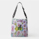 Monogram Pink White Pansies on Water Watercolor Crossbody Bag