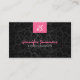 Monogramed elegant plain white and black tones vintage floral damasks pattern business card template fully customisable. Suggested pink font accent. Available on other products.
