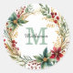 Monogram Poinsettia Wreath Holiday Correspondence Classic Round Sticker