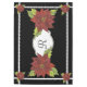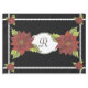 This pretty holiday tablecloth features a black background that you can change to any colour you want easily before ordering! Lovely at the table all season long, the centre has two beautiful red poinsettias and a white banner frame that you can easily customise with your monogram initial. There is white trim on all four edges with a small poinsettia on each corner.