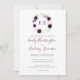 This wedding design features the bride and groom's monogram initials in dark purple framed by a watercolor wreath of blush and purple flowers and green foliage. Personalise the text with the couple's names in elegant purple handwriting script and the wedding details in charcoal grey. The reverse side is a solid shade of purple.