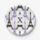 Monogram Purple Chic Eiffel Tower Pattern Paper Plate